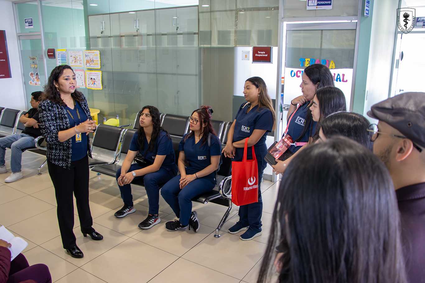 La delegación fue recibida por la Mg. Elizabeth Meléndez, jefa de la carrera de Terapia Física y de Rehabilitación, y la Dra. Milagros Céspedes, jefa de la carrera de Terapia Ocupacional, quienes les brindaron una cálida bienvenida y compartieron los enfoques formativos de ambas especialidades.