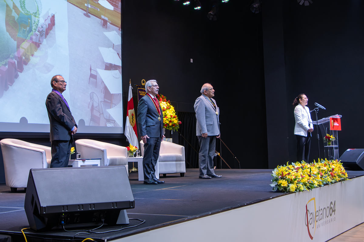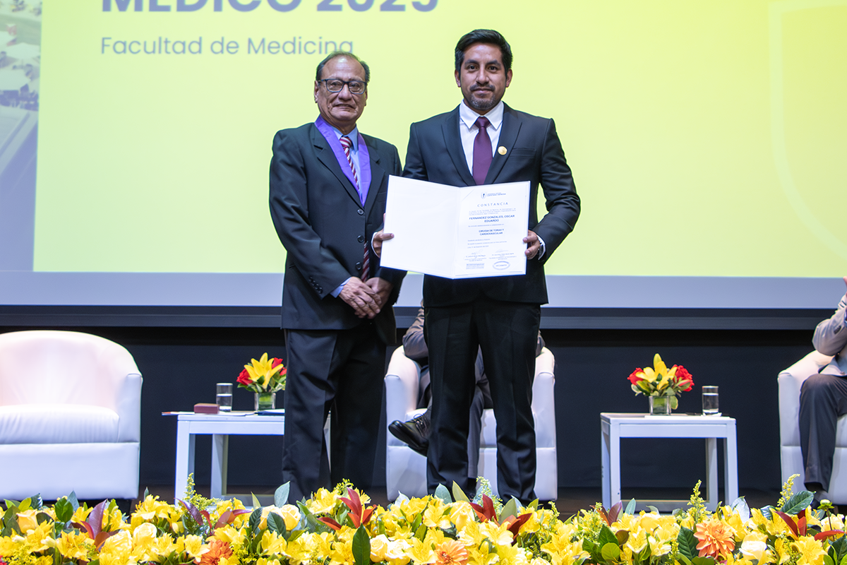 El evento contó con la participación del Dr. Pedro Saona Ugarte, decano de las Facultades de Medicina, de Estomatología y de Enfermería, el Dr. Félix Medina Palomino, Vicedecano de Medicina y el Dr. Antonio Ormea Villavicencio, jefe de la Unidad de Posgrado y Especialización, y del, quienes acompañaron este importante momento para la promoción Egresados 2025.