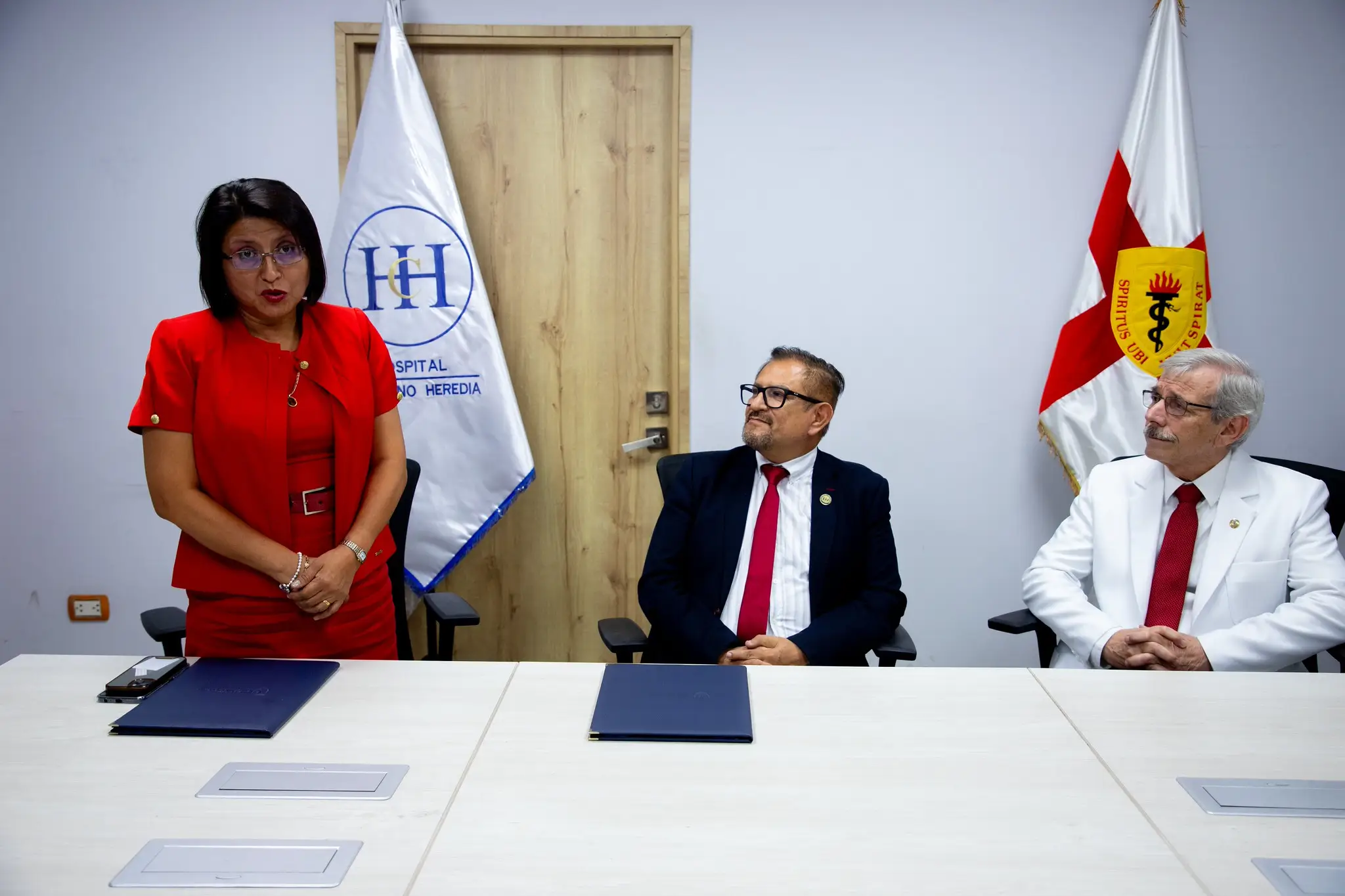 La firma del acuerdo estuvo a cargo del director general del hospital, el Dr. Jorge Flores del Pozo; y, por parte de nuestra universidad, de la vicerrectora académica, la Dra. Yesenia Musayón Oblitas, y del decano de las Facultades de Medicina, Estomatología y Enfermería, el Dr. Pedro Saona Ugarte.
